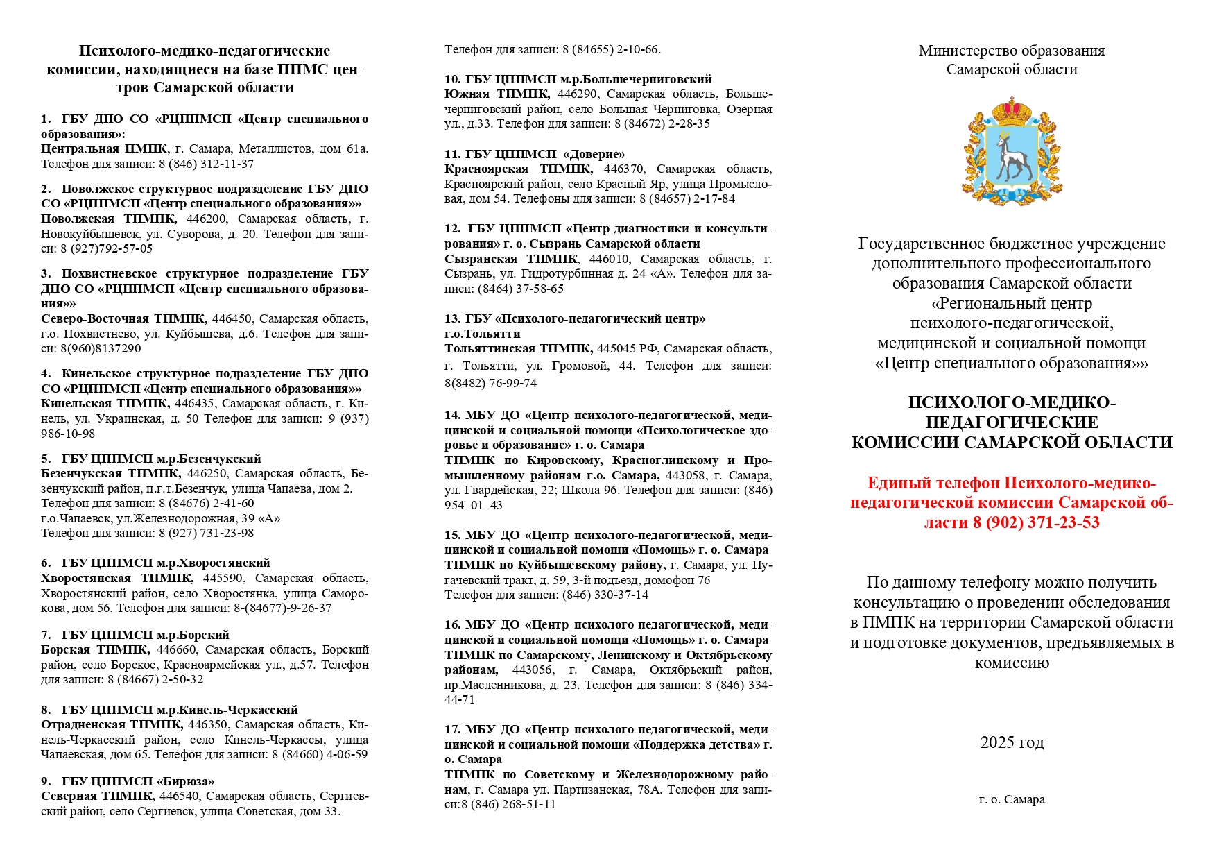 С 1 марта 2025 года в Самарской области функционируют 1 Центральная ПМПК и 16 ТПМПК.